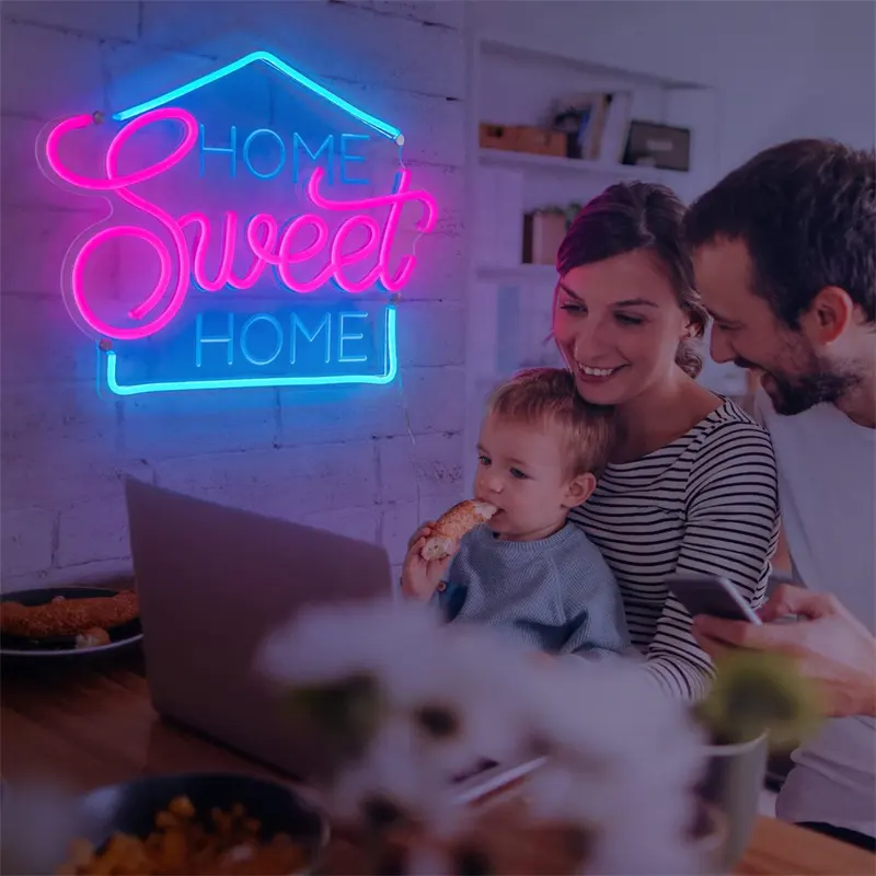 În mediile rezidențiale, semnele neon de interior îndeplinesc mai multe funcții dincolo de decor. Unele folosesc cuvinte sau forme neon pentru a crea atmosfere calme sau motivaționale în dormitoare, camere de zi sau săli de sport de acasă. Altele plasează semne neon în intrări sau în zone de divertisment pentru a începe conversații sau a îmbunătăți starea de spirit. Posibilitatea de a personaliza culoarea, luminozitatea și designul permite o integrare perfectă în diverse teme interioare, de la mansarde industriale la case moderne de la mijlocul secolului.